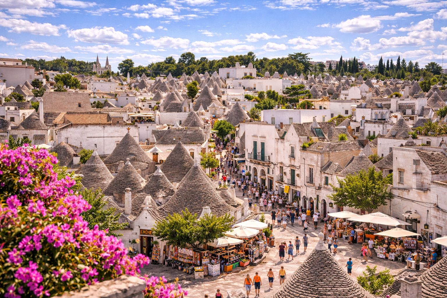 UNESCO Dünya Mirası Listesi’nde yer alan Alberobello, konik taş çatılı Trulli evleri ile İtalya’nın en özgün yerleşimlerinden biridir. Masalsı sokakları, beyaz taş mimarisi ve kendine has dokusuyla Alberobello, ziyaret eden herkesi bambaşka bir atmosfere davet eder. Bu eşsiz evler arasında yapılacak gezinti, turun en fotojenik ve akılda kalan anlarından biri olur.